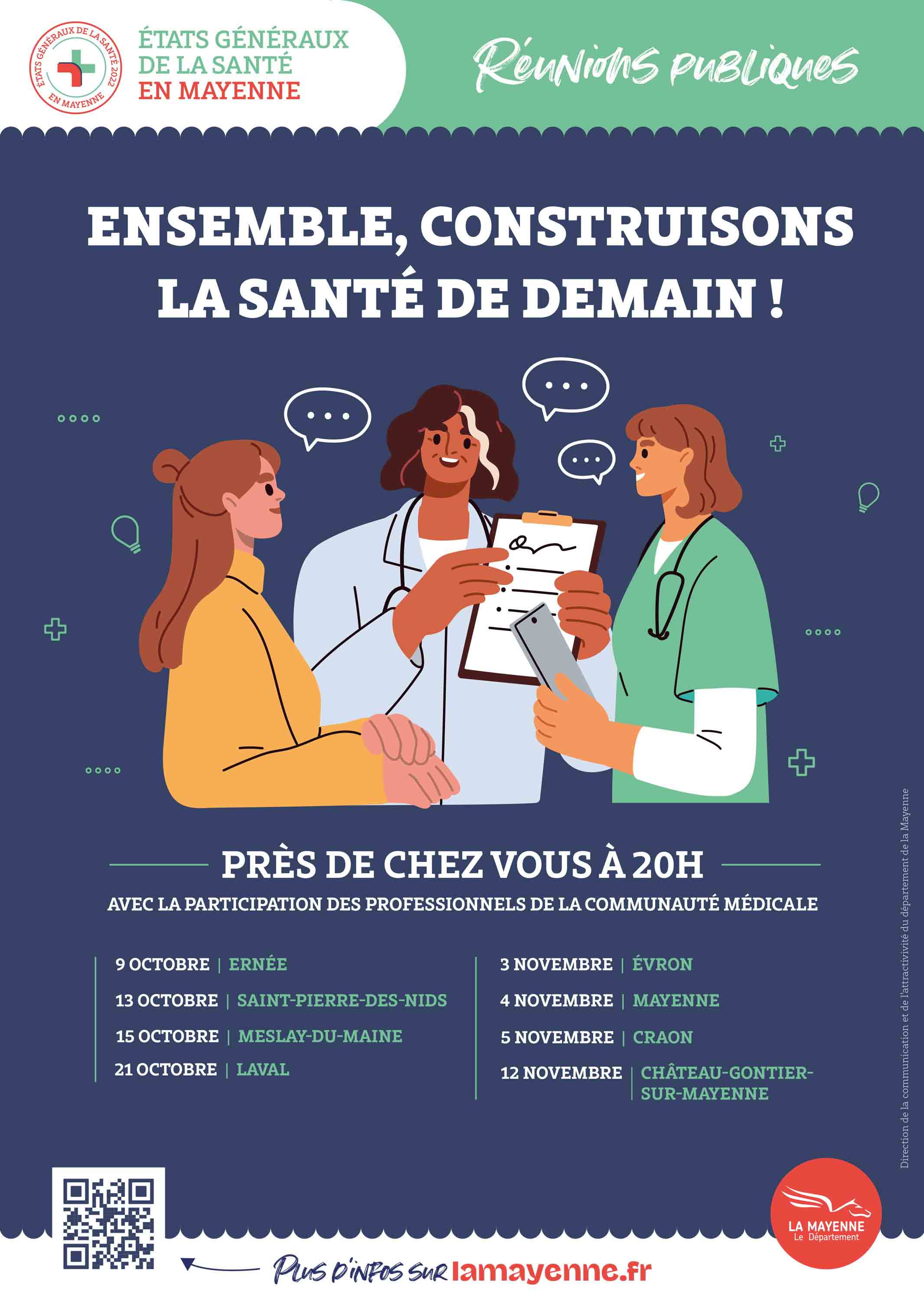 Pour faire face aux défis en matière d’accès à la santé que connaît le territoire, le Département de la Mayenne et le Pays de Craon organisent une réunion publique, afin d’associer pleinement les habitants dans la réflexion collective. Cette dernière se déroulera le mercredi 5 novembre à 20h00 dans la salle de l’auditorium du Centre Administratif Intercommunal à Craon.